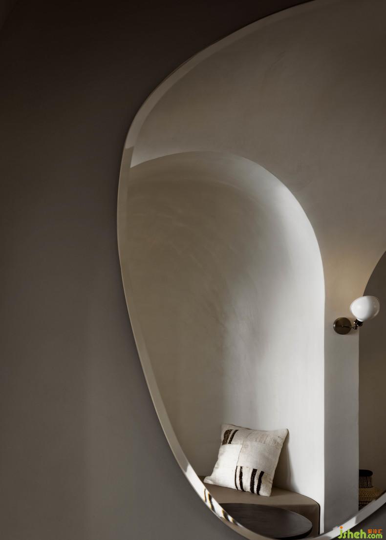 卡座區(qū)以洞穴造型為靈感,弧面的平滑細(xì)膩與布藝的綿柔質(zhì)感,賦予了這個小空間獨有的安全感與休閑感。屈膝而坐,與朋友在明暗交織里談天說地,或是閑散一人望月看海,明明是日??梢姷幕?,卻因為空間的不同,而氤氳出不一樣的詩意。
