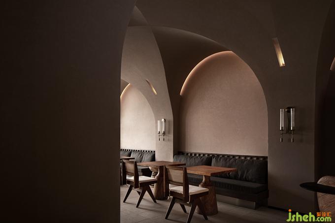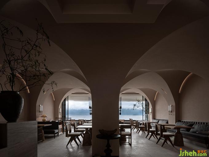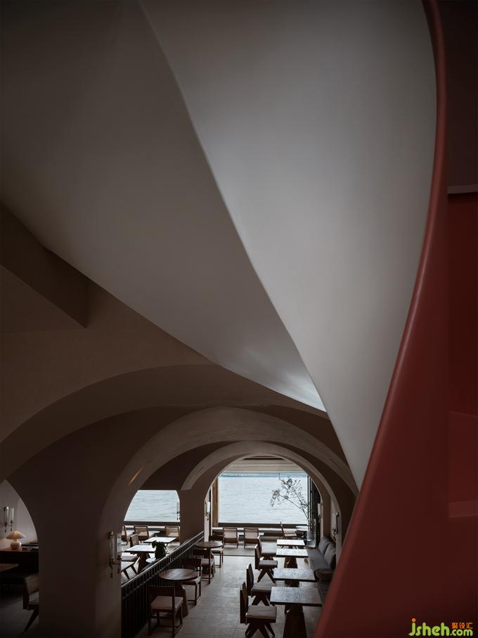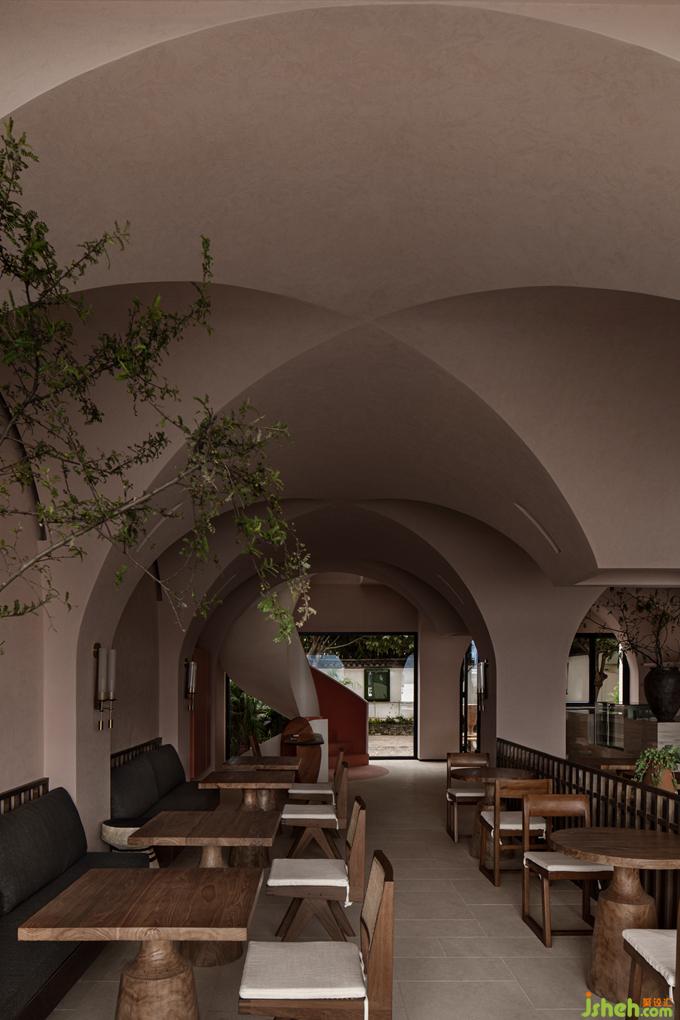 在室內(nèi),蜚聲用拱頂將空間分區(qū)籠罩,無需設(shè)置過多的空間體塊,便已完成空間秩序的無形構(gòu)建。