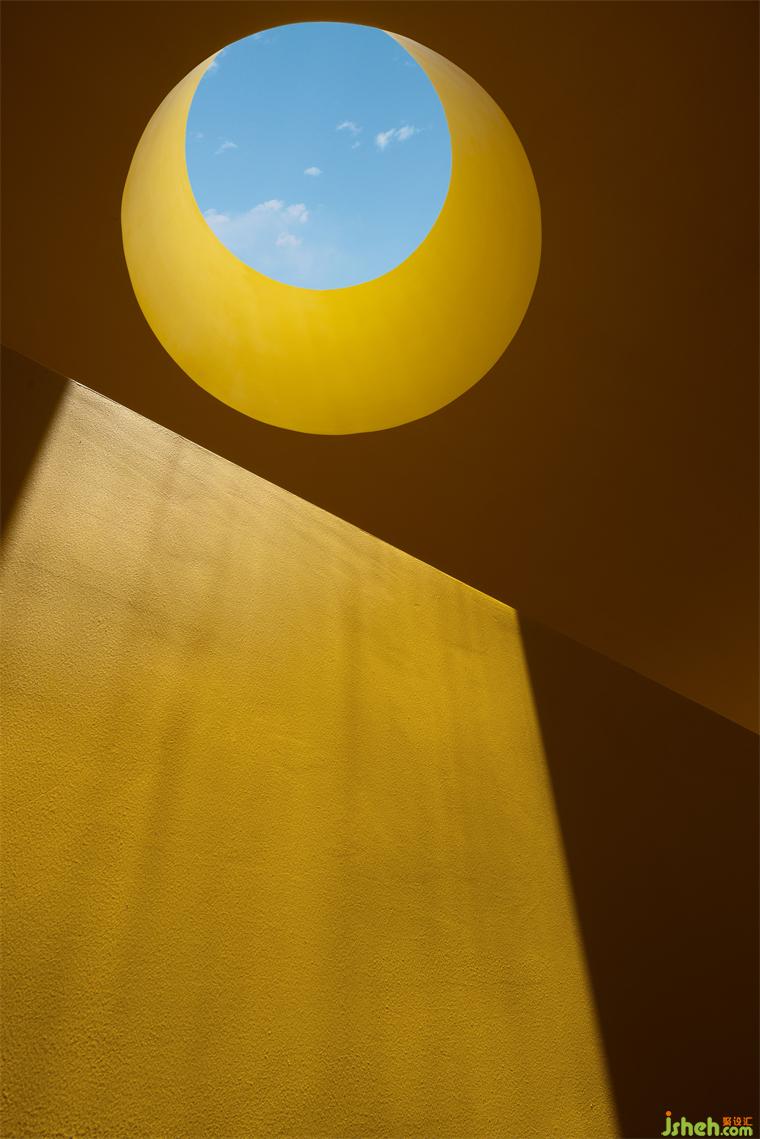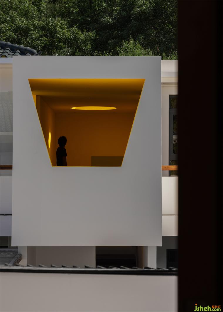 借一縷陽光,山中便多了一抹燦然的暖意。深圳民宿設(shè)計在上下往返間豎立的巨大墻體,將整體空間解構(gòu),光明與黑暗割半而分,卻又被圓窗引入的天光修補而合。油畫般濃郁的色彩生發(fā)出斑駁的層次感,在空間內(nèi)自由伸展,最終復(fù)融于梯形窗景明媚的日光中。