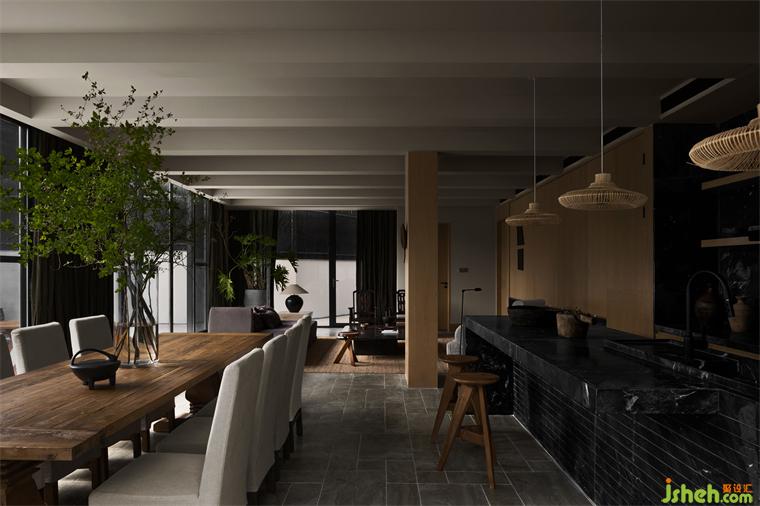 掩于門扉后的空間,在歸家人到來時悄悄蘇醒。石、木是客廳的主材,與枝枝綠意一同,呼應(yīng)著山林的氣質(zhì),深圳民宿設(shè)計低調(diào)簡素卻又生機勃發(fā)。白色棉凳、布藝沙發(fā)、中古木椅沿著動線齊整分布,在光線的明暗流動中氤氳出獨有的肌理質(zhì)感。