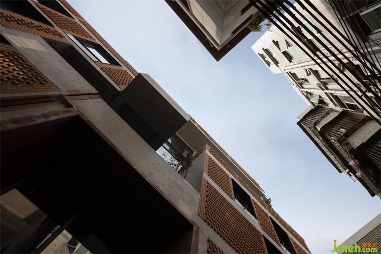 日光向下,酒店設(shè)計建筑被籠罩于紅色,經(jīng)歷時間的風(fēng)化后,逐漸冷卻固色,成為新的故事的承載容器。此處的到訪者化身為歷史的筆,記錄定格的當(dāng)下與變化的未來。