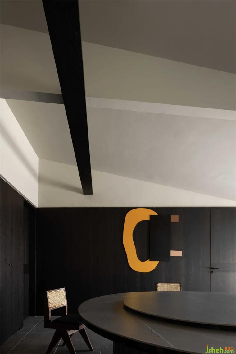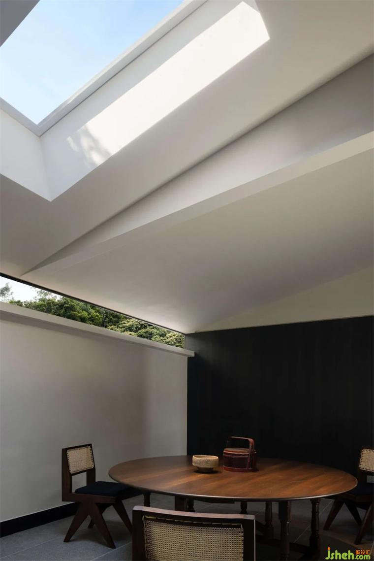 黑色木飾面圍合著四周墻面,渲染出一幅水墨般的私密氛圍;一根黑色梁橫穿白色斜頂天花,苫也不若林民宿設(shè)計(jì)以宣告自己的特立獨(dú)行。山野林間、霧緲?biāo){天,在預(yù)先設(shè)計(jì)好的窗框里成就一幅幅山野畫(huà)卷。光與影,室內(nèi)空間與自然環(huán)境,酒店設(shè)計(jì)看似是此消彼長(zhǎng)的相悖,實(shí)則是相互成就著共生。