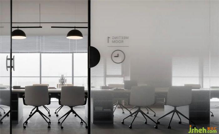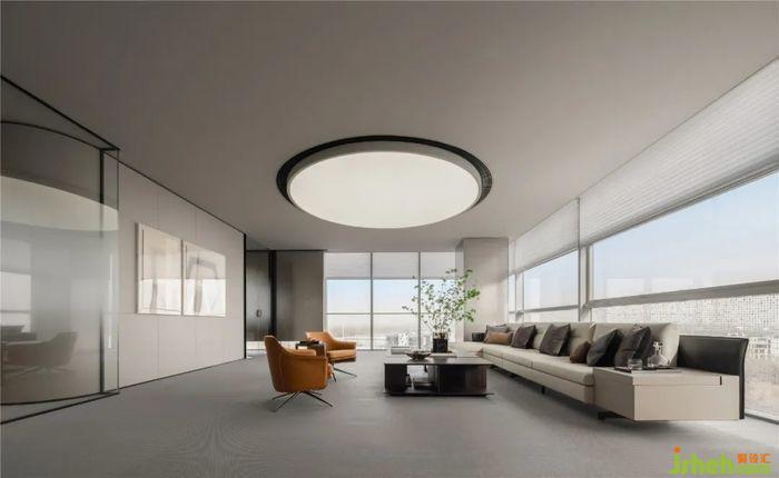 長(zhǎng)桌區(qū),是一個(gè)開放型的會(huì)議討論區(qū)。辦公展示中心設(shè)計(jì)相比傳統(tǒng)會(huì)議室的封閉性,這里給人的感覺更加平等自由。此處家具色調(diào)與周圍留白統(tǒng)一,成為會(huì)議室與開放辦公區(qū)之間的平緩過渡。