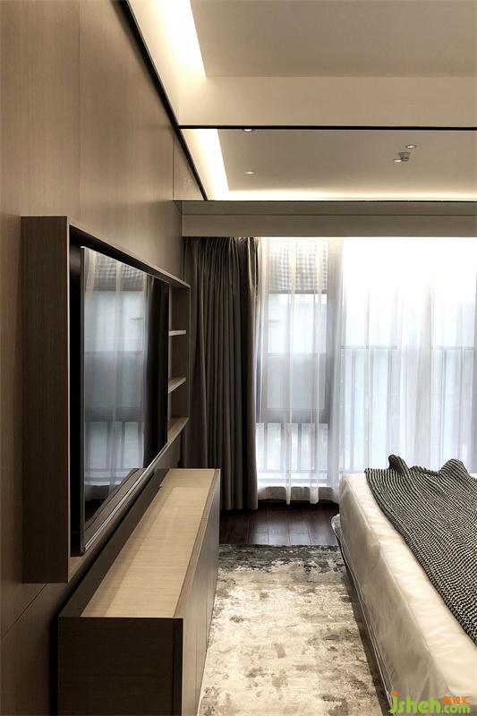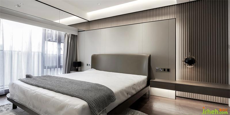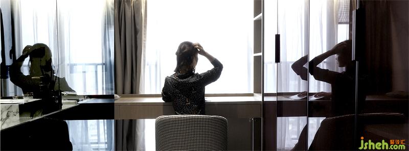 家居設(shè)計(jì)隔斷主浴室和衣帽間的是整面全通透的淺灰玻璃,衣帽間不會(huì)被主浴室的濕氣影響,主浴室也能納入衣帽間的光亮,既是兩個(gè)獨(dú)立區(qū)域,又是一個(gè)整體的視覺空間。