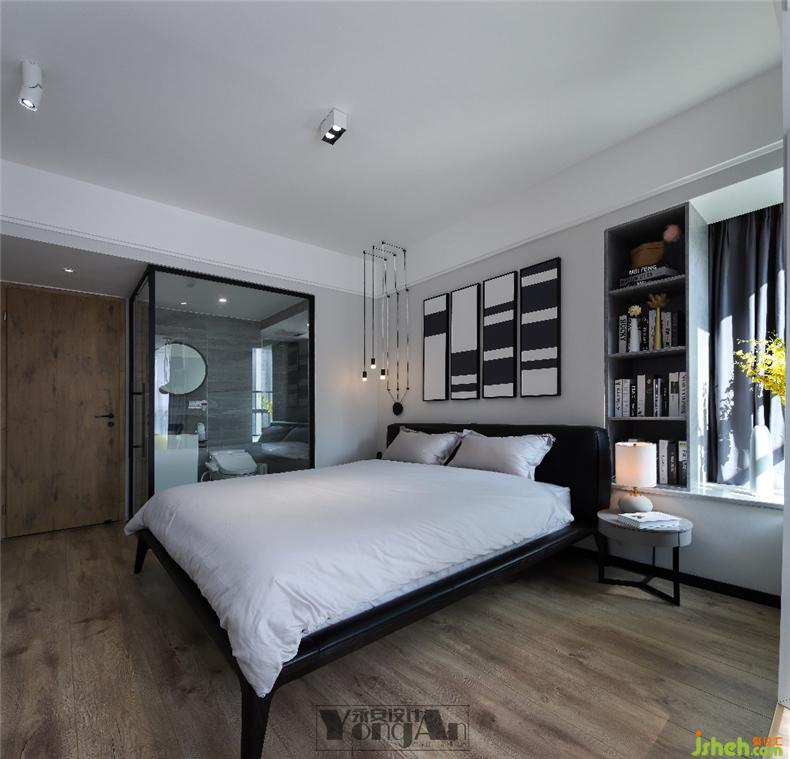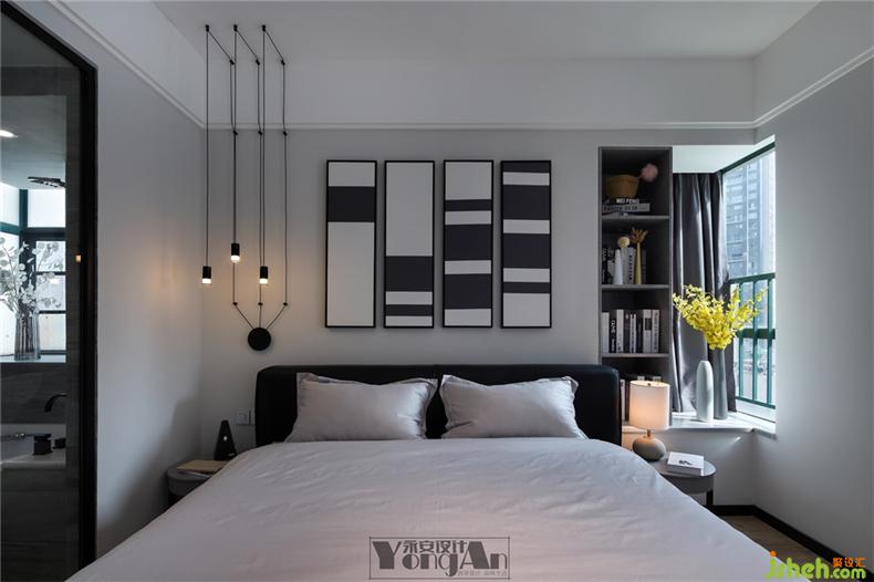 黑白與木色的臥室,現(xiàn)代感里融入自然的氣息。