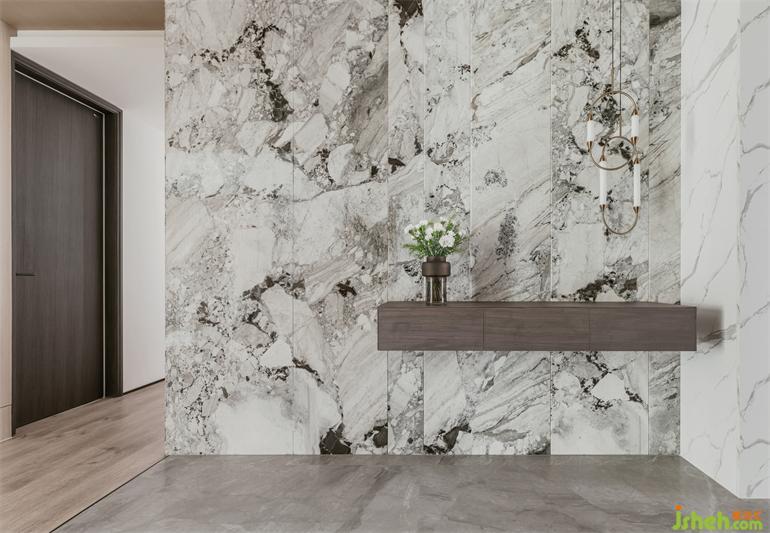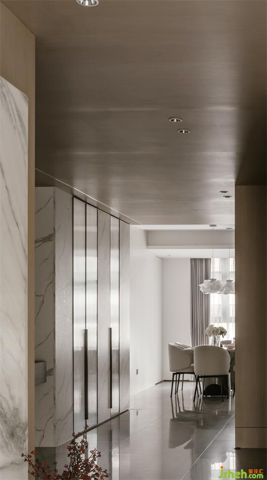 河源家居設(shè)計(jì)動(dòng)線長廊串聯(lián)起餐廳、玄關(guān)、客廳,利用材質(zhì)紋理的交融設(shè)計(jì),模糊空間邊界,最大限度的使光線自由的流動(dòng)在空間當(dāng)中。