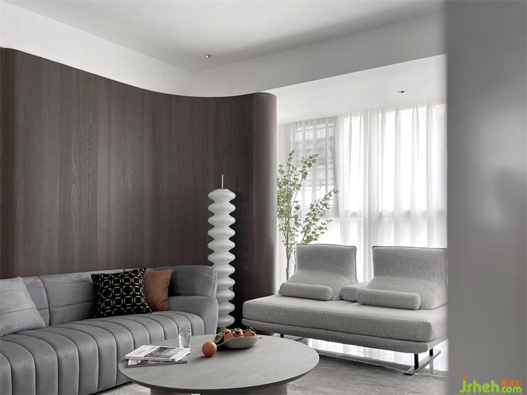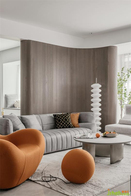 木質(zhì)溫潤樸實(shí)、布藝舒適包容,營造了溫暖的場域空間,同時選用石材對比結(jié)合,豐富了空間的視覺語言。隨處可見的圓環(huán)與弧線,凝固的空間內(nèi),注入流動的韻律,大面積落地窗帶來通透的采光巧妙打通內(nèi)外環(huán)境,讓空間關(guān)系愈加飽滿。
