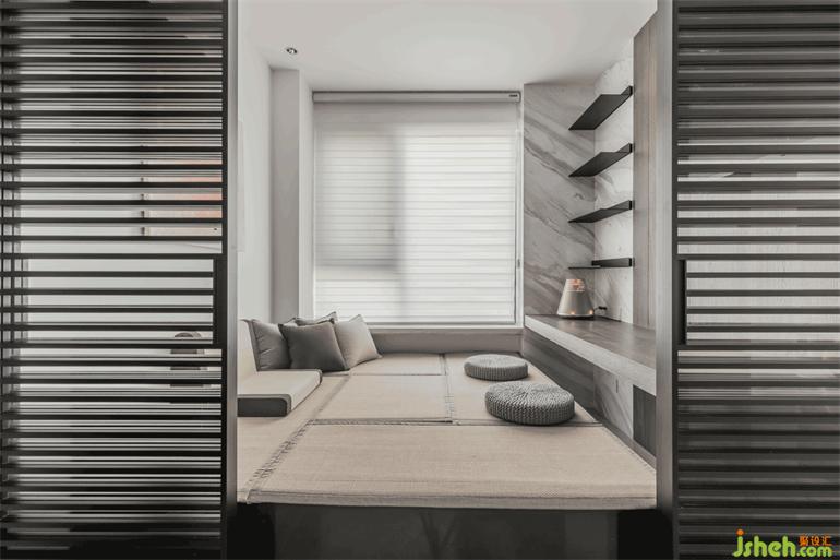 懸空布置的書(shū)桌,延伸到衣柜邊角,每一個(gè)角落都有它特有的職能。