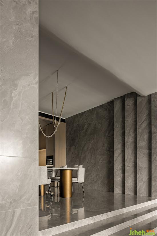 墻面材質(zhì)的鋪陳、延續(xù),通過大量的塊面交錯(cuò)關(guān)系,從視覺和動(dòng)線感受上,拉長(zhǎng)空間的縱深感及開闊感。東江首府家裝設(shè)計(jì)對(duì)空間中的燈光,進(jìn)行了線條化引導(dǎo)處理,強(qiáng)調(diào)結(jié)合空間光影層次。家裝設(shè)計(jì)頂部線性燈光帶來空間的延伸感,同時(shí)以其極細(xì)膩的光感分布。