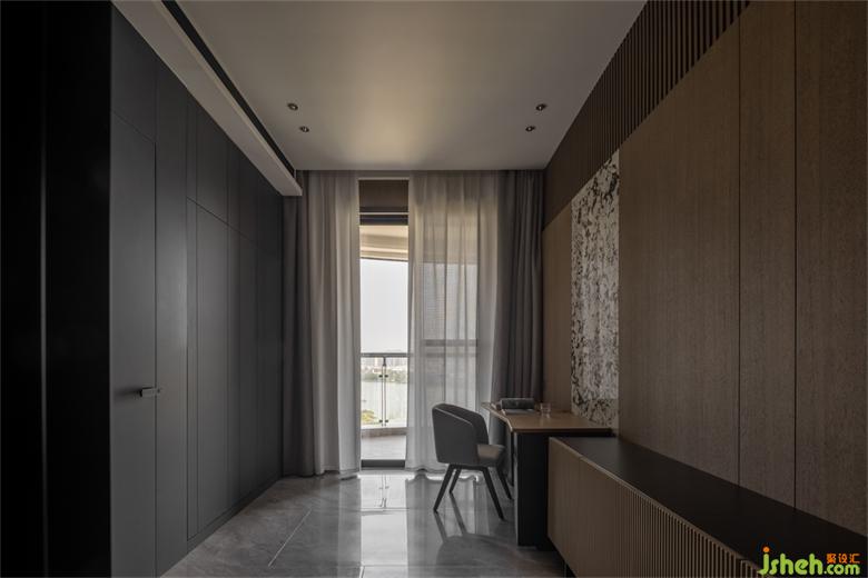 用塊面的材質(zhì)變換,和諧的分割出動線,干凈,通透,沒有一處冗余,東江首府家裝設(shè)計讓書房區(qū)域擁有通透的流動與層次感?。