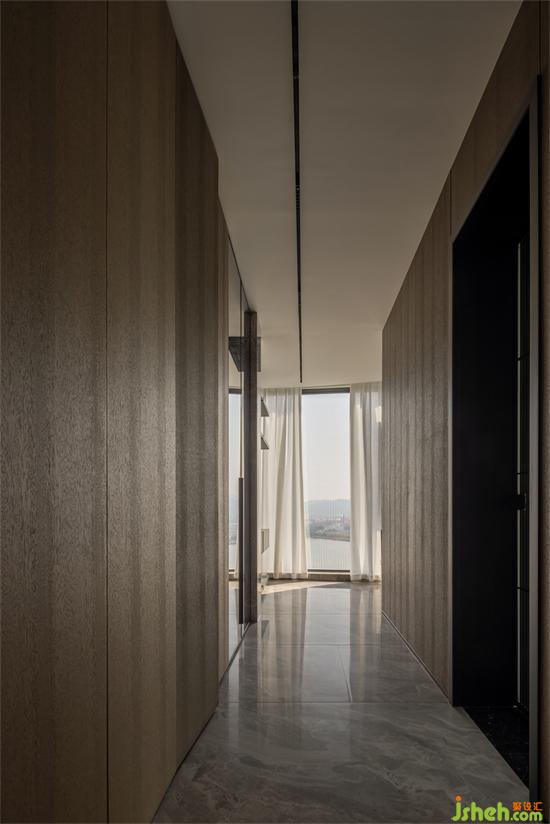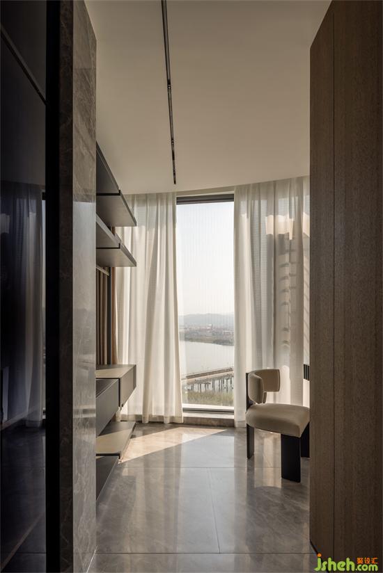 寬敞落地窗戶,充足的自然光線。東江首府家裝設(shè)計陽光悠悠地灑進(jìn)屋內(nèi),輕柔而恬逸、溫暖且安適,感受寬廣尺度和身體的舒展釋然。Spacious floor to ceiling windows with plenty of natural light. Sunshine leisurely pours into the room, gentle and peaceful, warm and comfortable, feeling the broad scale and the relaxation of the body.