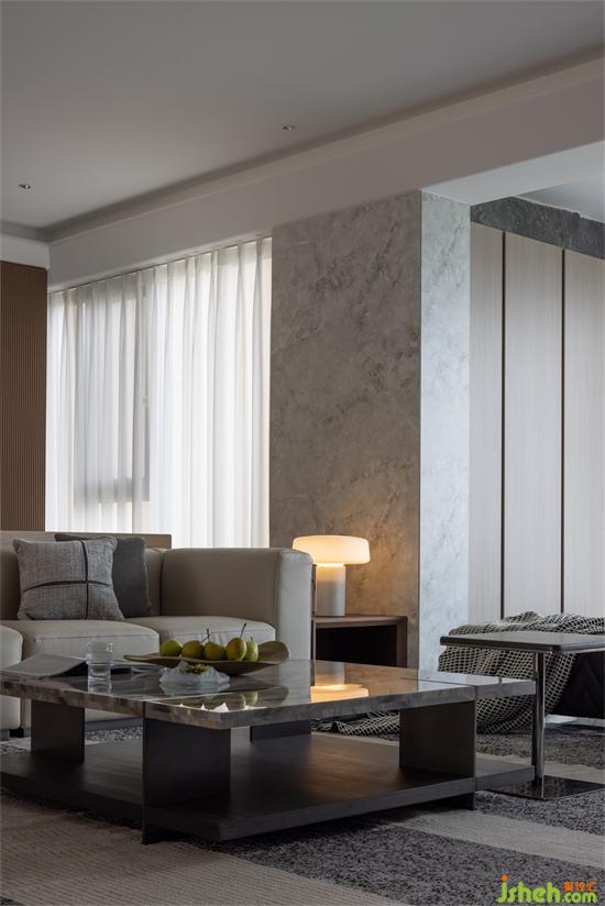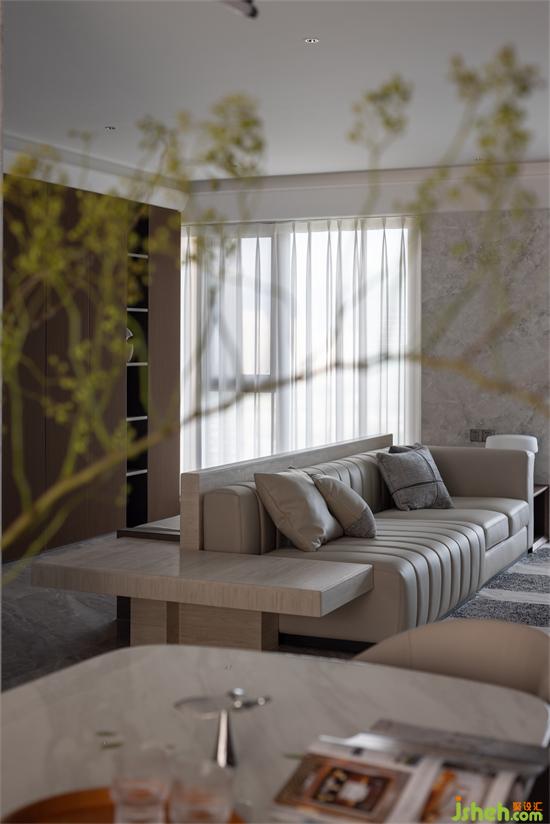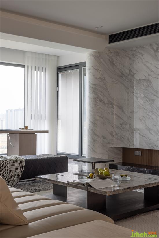 天然大理石紋理營造出現(xiàn)代的輕奢質(zhì)感,透過落地觀景大窗的陽光,東江盛世豪宅設(shè)計(jì)白色的夢(mèng)幻簾轉(zhuǎn)動(dòng)其中,帶動(dòng)光影的瞬變。