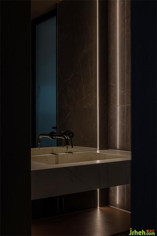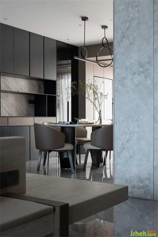 光毫無保留地參與空間秩序全新構建,令人全方位地感知四時的流轉、生活的律動光景。東江盛世豪宅設計不同的材質在這里碰撞交融,伴隨線條的游動,傳遞出柔軟溫和的氛圍感,令整個空間沉淀下來,歸于篤靜。