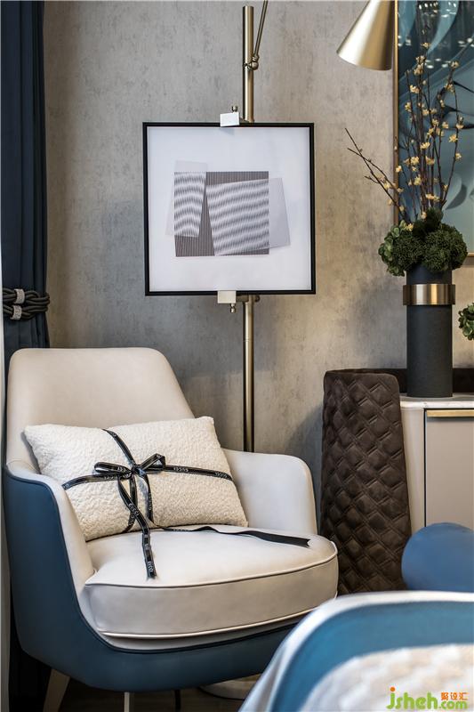 設計簡取“現(xiàn)代臻境”的敘事筆法,結(jié)合肌理柔和的棉質(zhì)地床品,刷新現(xiàn)代人居生活的定義;飾品和藝術(shù)品更多展現(xiàn)柔美馥郁的優(yōu)雅氣息;雅致的霧霾藍與格紋輕輕地挑起空間的韻律美感,仿佛協(xié)奏著一首貝多芬月光曲,靈魂演繹,優(yōu)雅舒心。