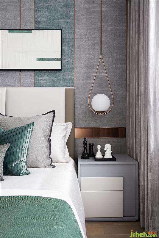 空間的現(xiàn)代質(zhì)感在臥室得到延伸,簡潔的線條勾勒出人們回歸本質(zhì)的初心,金屬質(zhì)感的吊燈演繹青萍之末生生不息的因果延續(xù),細微的牽引卻讓各司其職的物件匯聚成一個優(yōu)雅平和的整體,立于紛繁,而靜于內(nèi)心。