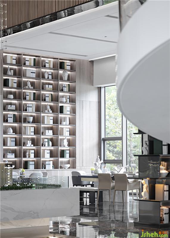 洽談區(qū)以木色貫穿,體塊式的書(shū)架墻顯現(xiàn)書(shū)卷氣息,在素雅的底色氤氳下,東方的靜默文雅與當(dāng)代簡(jiǎn)約共融相生。
