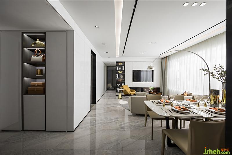 排列有序的輪廓,光與影的滲入,組成線與面的節(jié)奏變化,自在隨如水般漫溢而出,心緒樸素而無(wú)瑣屑。樣板房設(shè)計(jì)