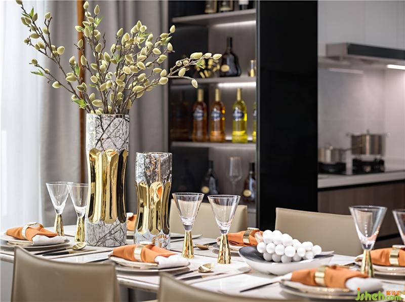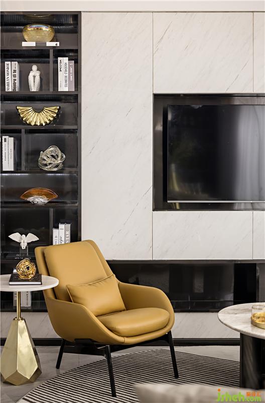 雅士白大理石溫潤而遒勁,隱約可見的自然肌理,化作簡約凝練的飾面形塑空間意境;橙色的局部點(diǎn)綴蘊(yùn)藏著無限的生機(jī),如同樂章的旋律,在整個(gè)空間中變奏交響,悅耳動(dòng)聽。