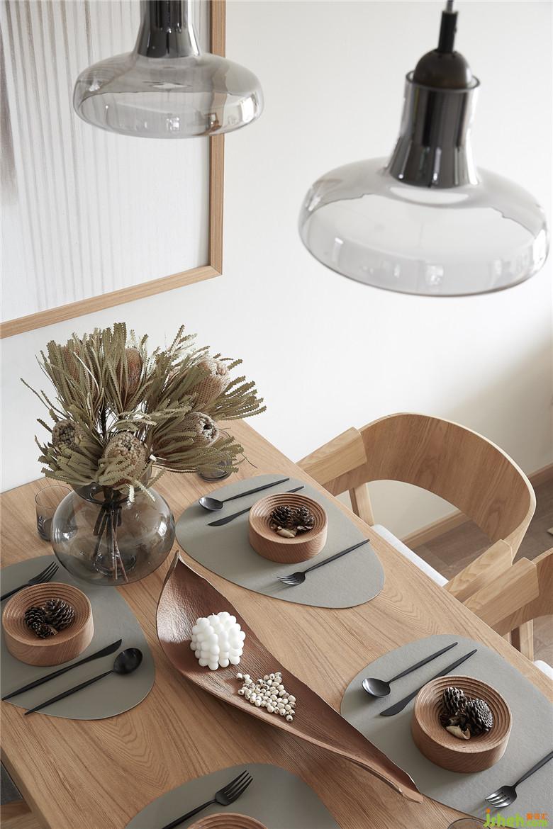 整個空間中涵容著現(xiàn)代氣息的簡約靜寧,又藏匿著自在的悠閑氣息。暖白色沙發(fā)、原木矮幾、幾何地毯的陳列,藏納在脈絡清晰的紋理之中,棉麻白的清雅恬淡的氣息自在流淌,當陽光傾瀉而下,時光緩緩流淌,細品一首生活靜謐之詩。