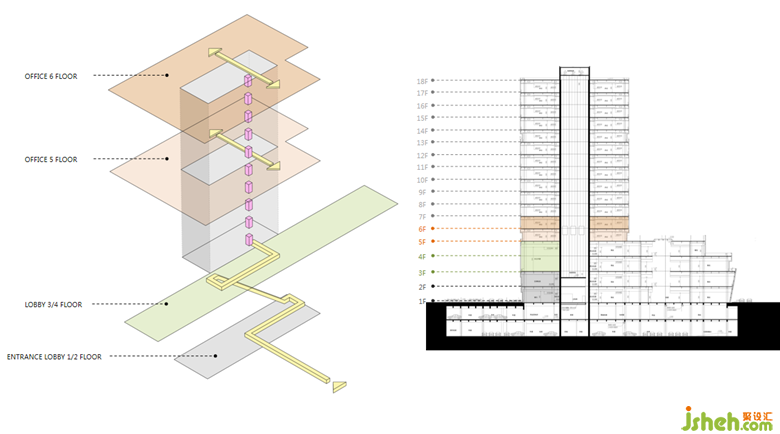 由于不同樓層所承擔(dān)的不同的功能,本案主要分析4F、5F的辦公空間,空間功能多變和重合,以滿足和適應(yīng)各種群體多元化的功能需求。