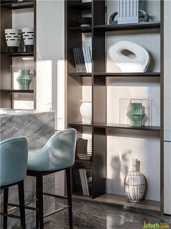 聞茶聽風,慢享斟酌?!捌斩琛鳛樵颇系奶厣?,設計師以此為靈感,設計師通過提純和處理的藝術手法描繪空間的主調,木質與理石的古雅,仿若浸潤著普洱茶湯的氤氳色澤,在藝術間穿行閑緩自在的精神氣格亦隨之生長。