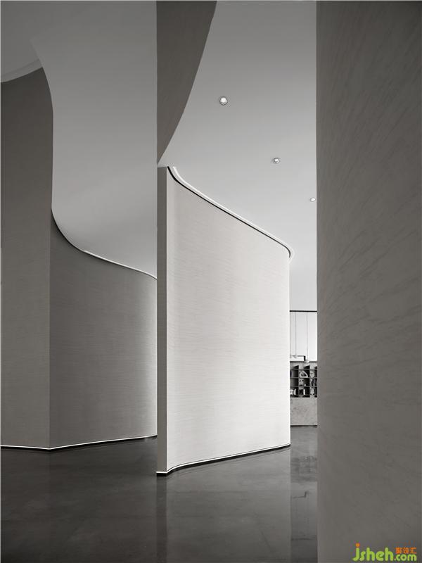 接待前廳,幾段曲線,寥寥幾筆繪盡漢水迸流的寫意之美,意象與自然并肩偕行。深厚的人文與線條的靈動(dòng)如浪濤般綿延,素雅無(wú)邊卻又風(fēng)雅自成。
