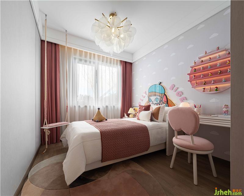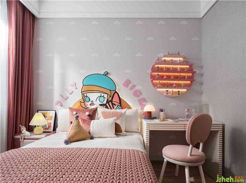 粉色調(diào)著筆,細(xì)致地摹畫出一個(gè)小女孩內(nèi)心深處的世界,夢(mèng)幻而童真。一塊塊記憶的拼圖拼出的理想王國,一個(gè)個(gè)盲盒小擺件拼湊出活潑可愛的空間氣韻鄭州樣板房設(shè)計(jì)。
