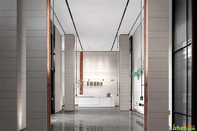 簡潔的墻壁,綠色線條仿佛一圈圈年輪的肌理,與游弋的光線彼此互襯,形成一幕凸顯藝術(shù)精神的藝術(shù)裝置。墻壁猶如畫布,裝置在其中輕盈的作畫。