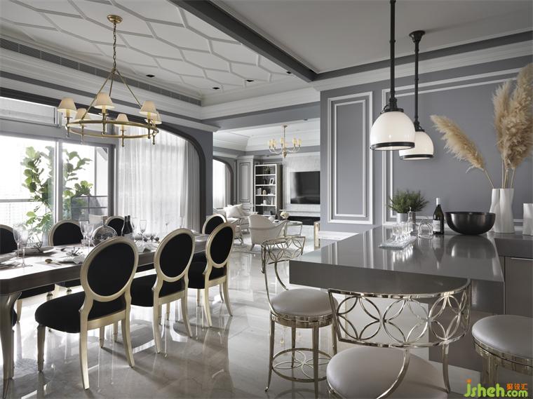 「我們注重每一個(gè)細(xì)節(jié),提升空間的質(zhì)感,就象是精心打造的珠寶盒,讓人過(guò)目不忘!」吳啟民設(shè)計(jì)師表示,本案在動(dòng)在線從公領(lǐng)域自私領(lǐng)域,一步步安排層層遞進(jìn)的美學(xué)驚喜,源自于融匯東西方元素的比例,營(yíng)造出獨(dú)特的融合風(fēng)格,呈現(xiàn)出有別于眾的高雅格調(diào),「我們?cè)诳蛷d選用內(nèi)斂典雅的暖灰色調(diào)展演色彩層次的豐富感,更耐看也更能撫慰身心,營(yíng)造讓人放松的視覺空間;柔和的電視主墻紋理穩(wěn)重而不單調(diào),承接住規(guī)整且層次下降的線版,視覺上構(gòu)成輕重和諧的材質(zhì)比例,在窗外的自然光照映下輕盈而紓壓,另外在門、窗、過(guò)道間,我們善用『拱型框』做為空間遞嬗的暗示加強(qiáng)空間的層次感,其柔滑利落的線條既能承重又有流水般的自在,獲得喜愛經(jīng)典、優(yōu)雅的高端人士強(qiáng)烈共鳴?!?
