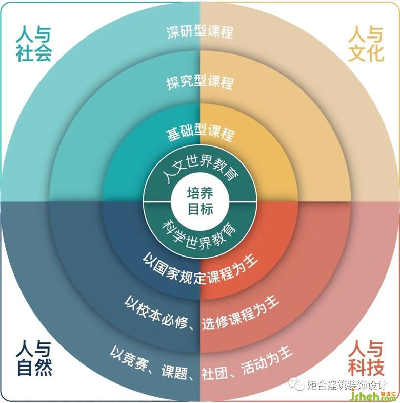 矩合設計為空間設置“人與社會、人與文化、人與自然、人與科技”四個維度,覆蓋未來人才核心知識素養(yǎng)。學校建設設計師賦形于具有生命力的現(xiàn)代校園空間,重塑教育空間。