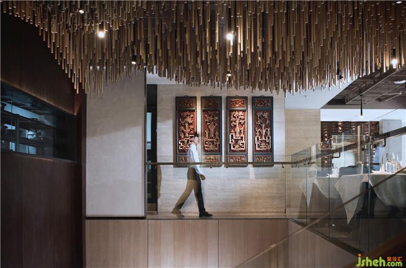 二層墻面上吊掛了四幅江南木雕花板,是業(yè)主無意間收來的舊時(shí)精致之物,置于當(dāng)下的現(xiàn)代環(huán)境之中。Four sculpted panels are hung upon the wall on second floor. These are delicate collections of the shopowner.