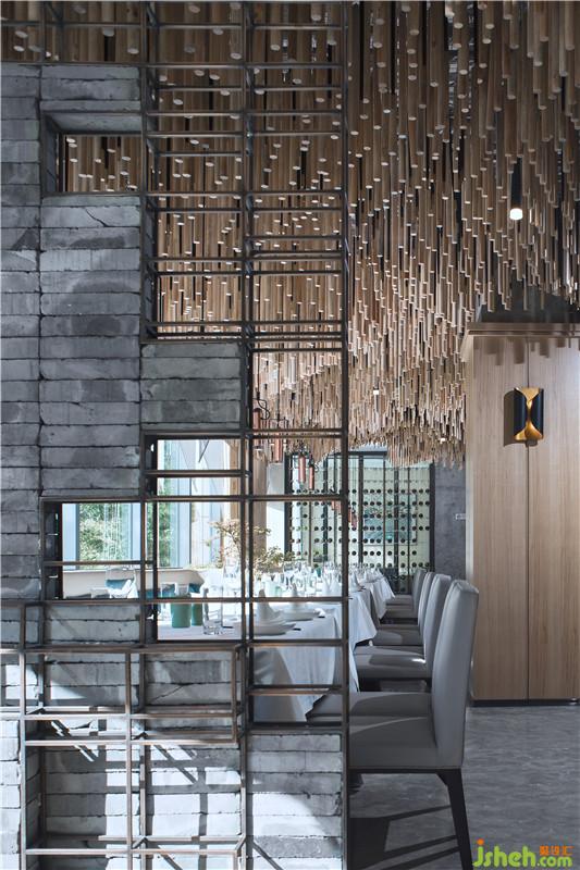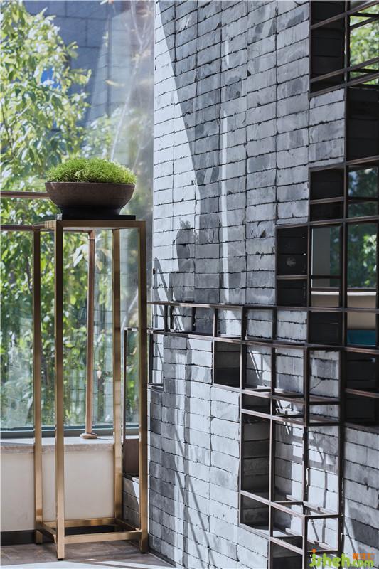 Among various deco materials of Tanglang, the designer favors blue bricks particularly. He presents the texture of blue bricks layer by layer. The brick wall by the bar exhibit strong sense of order. Blue bricks embedded in metal frames properly conveyed the timelessness of ancient wall.