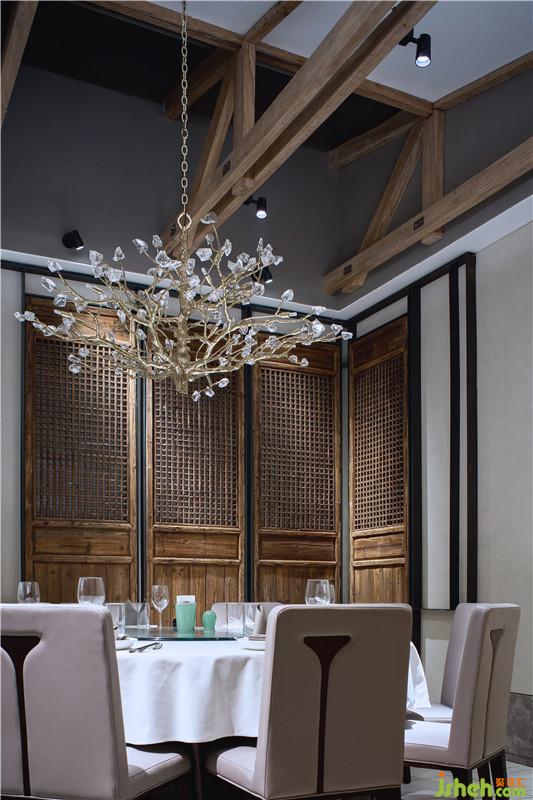 包間既保證了用戶的私密性,又形成了獨(dú)特的視覺感官,不同的格子之間,將不同年代展現(xiàn),在這一隅,將鮮明的歷史姿態(tài)與生活契合。墻體裝飾使用了從舊建筑上拆除下來的花格門扇,舊為新用既保留了傳統(tǒng)建筑的視覺印記,也與現(xiàn)代空間設(shè)計(jì)之間形成了鮮明的對(duì)比關(guān)系。The booth guarantees privacy of customers while presenting unique visual sensation. Historical elements are this combined with daily life. For deco on the wall, framed doors from ancient architectures are used. It preserves visual factors from traditional building, and provides great contrast to modern space design.