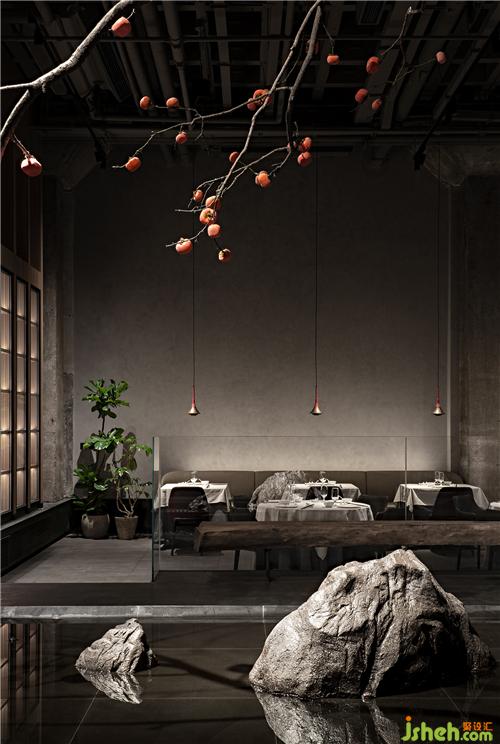 延續(xù)四季民福的品牌理念,質地密實、顆粒細膩的故宮金磚與京城民居常見的灰調青磚,與大面積保留的清水泥素面墻體一起構建出空間底色。近乎于宏大的場景里,肅然靜默的空間、粗糙溫煦的肌理、鼓動的水流與日常情愫疊加,平和與氣度共存一處。