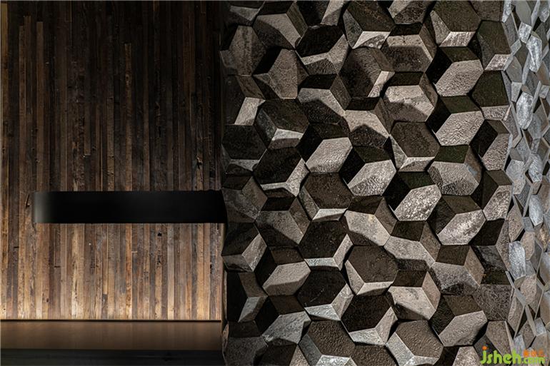 設(shè)計(jì)師吳為在這次的空間設(shè)計(jì)中將粗糲感放到了極大,密實(shí)排布的青石有力地包裹住了整個門頭,和所有經(jīng)過它的人無聲致意,沒人可以忽略它帶來的震撼感——無論是劈鑿開的山石,或是消波塊密布的壯闊海岸,都可以任由想象。