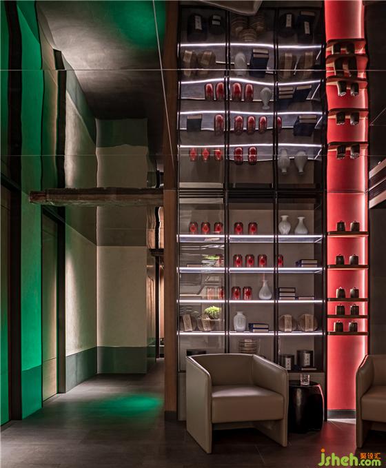 傳統(tǒng)水磨石與大膽的紅色結(jié)合適度點(diǎn)綴在空間中,在二層續(xù)接絢爛的燈光;酒窖通體被照亮,清冽感使它在樸素的空間里格外迷人;紅綠燈光克制地勾勒出本來素雅的公共區(qū)域,雀躍的時(shí)代感和不動(dòng)聲色的優(yōu)雅默契相融......