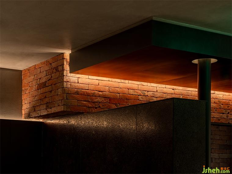 立柱、紅磚、灰色墻體、屏風(fēng)在垂直立面組合劃分了公共區(qū)?;食墙ㄖ?、民宅舊影、市井人家經(jīng)過提取和演繹并行在同一空間,疊映出一座城市最具識別性的特質(zhì),而它們在空間的水面攪動起嚴(yán)整、文雅、溫煦的漣漪,從每個人的心湖中央向無盡處蕩開,它們共同譜寫了難以分割的空間氛圍。對傳統(tǒng)和古典的重現(xiàn)皆使用現(xiàn)代材料,并在結(jié)構(gòu)和形態(tài)上進(jìn)行了簡化和藝術(shù)化重塑,使在時間和意義上都相距甚遠(yuǎn)的元素能夠和諧共處。
