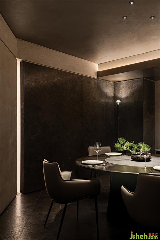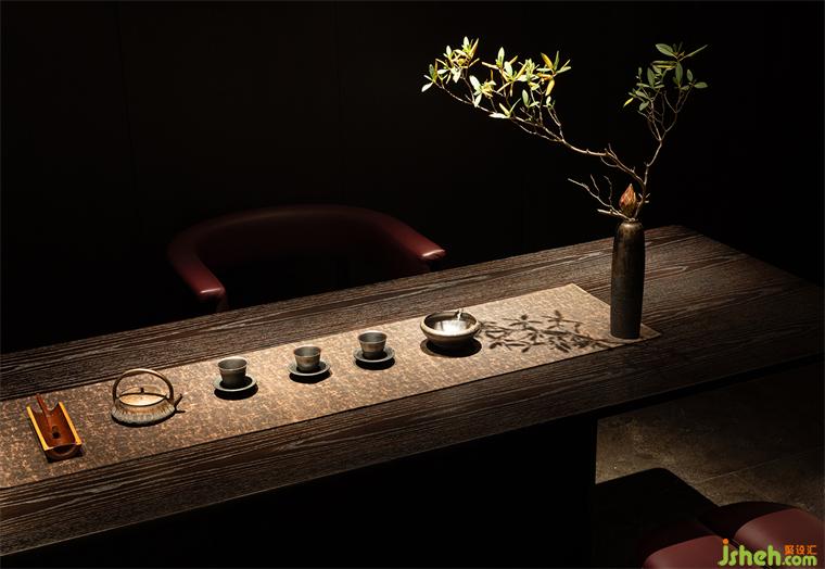 吧臺(tái)、茶臺(tái)等區(qū)域構(gòu)建出微景別的自然,北方冷空氣里的蒼勁生機(jī)與文人書(shū)房的微縮園林皆有呈現(xiàn),這些自然的虛構(gòu)空間將食客的意識(shí)推出城市、推向自然。它們留白的想象空間比極盡還原的山水更貼近臻選店深遠(yuǎn)含蓄的價(jià)值傳達(dá)。