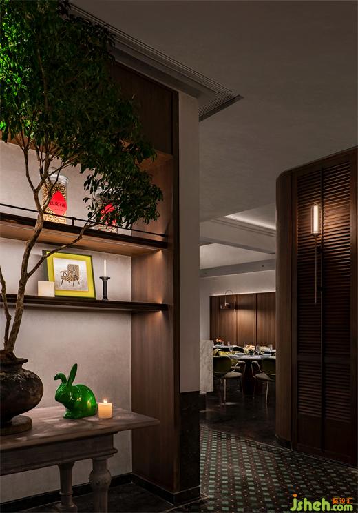 火鍋設(shè)計風(fēng)格是新空間撬動情緒的密鑰。經(jīng)過變體的木質(zhì)護墻板、百葉窗、花磚、軟包扶手椅、黃銅壁燈......設(shè)計書寫了一幅南洋、東洋與西洋混合的懷舊手卷,港式火鍋的基因只是一個引子,它牽出滄桑巨變的百年歷史中,是永不褪色的亞太文化風(fēng)情和華人的不朽傳奇。當(dāng)把令人迷醉的大歷史拓印在現(xiàn)代空間中,其中的力道使設(shè)計師敢于訴諸一種融合的風(fēng)格表達。
