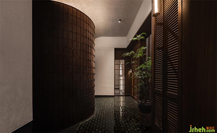 火鍋設(shè)計門頭是餐廳和skp間的物理界面,厚重的白色石材低于天花,這面如影壁或屏風(fēng)意向的LOGO墻稍稍遮擋了內(nèi)部,同時拉出了空間層次,它統(tǒng)領(lǐng)了內(nèi)部的體驗:在有限空間里,各區(qū)域片段的感官組成印象的疊加,平??臻g因為韻律變化而妙趣橫生。