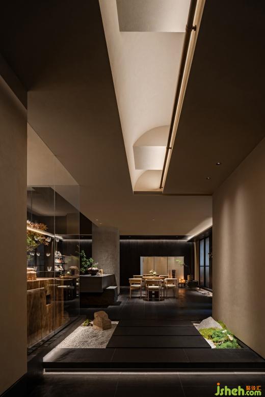 喝茶喝茶,中國人首先喝的是茶,是質(zhì)樸的日常生活,不那么繁瑣刻板?!恫杞?jīng)》里說“茶之為用,味至寒,最宜精行儉德之人”,明確提出“茶性儉”,空間以天然之法及豐富的層次肌理表達(dá)了儉的奧義。