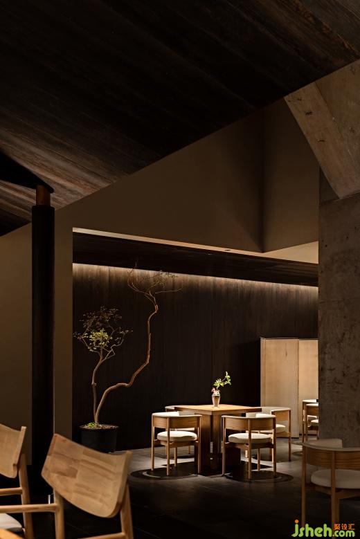 由長廊向內(nèi),散座輕盈,與屏風(fēng)、燭火自成一體,構(gòu)建出室內(nèi)的層次。沙龍亭與庭院入口對望,成為開場區(qū)域的精神堡壘。