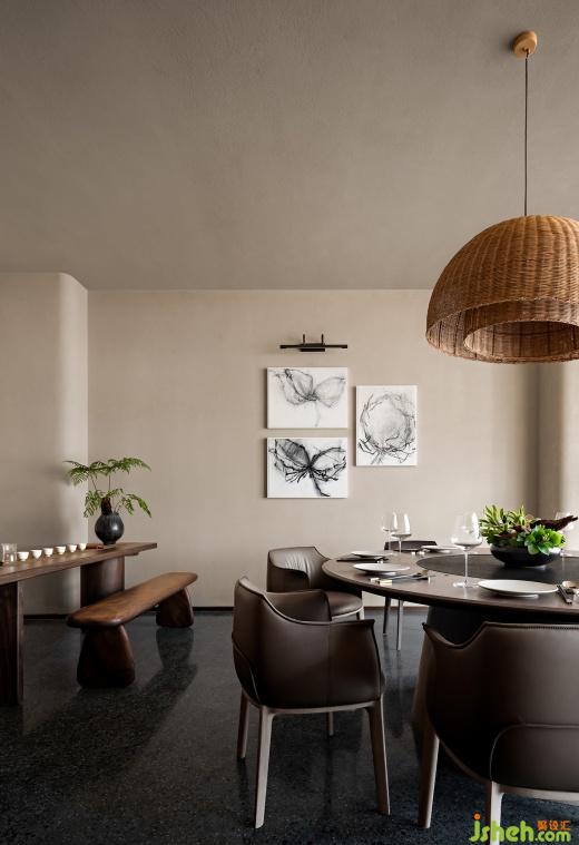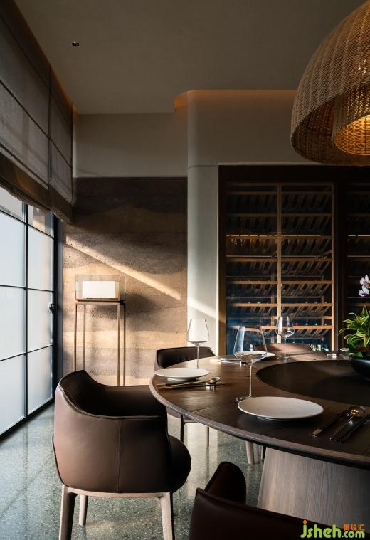餐廳設(shè)計(jì)包房內(nèi),透光布簾隔出一個(gè)鄉(xiāng)土氣息十足的私密空間,水磨石、實(shí)木與肌理漆巧妙的使當(dāng)代感沉淀在底部,舒適耐用的桌椅餐具、豐富的窖藏、茶臺(tái)等大大拓寬了就餐人群和就餐屬性。