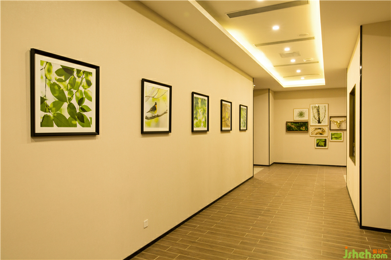 進(jìn)入售樓處首先映入眼簾的是以“山”為主題的玻璃山水雕塑?!皩訋n疊嶂”的視覺(jué)層次將訪客帶入主題意境中。結(jié)構(gòu)柱上的木格柵從“大樹”底部沿著“樹干”一路蔓延至“樹冠”,然后彎曲變成“樹枝”縱橫交錯(cuò)。借著售樓處的高挑空間,一棵棵“參天大樹”拔地而起,形成了獨(dú)具一格的頂面構(gòu)造,讓人仿佛置身于大樹之下。