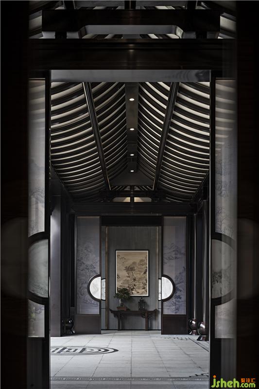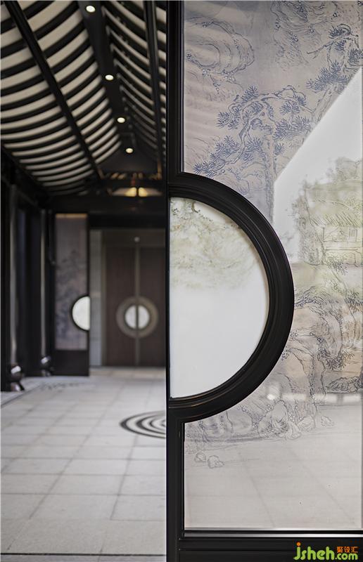 撇山居國(guó)畫為影壁,端景為綴色,道園氤氳。在移步易景中,以庸正端雅的基調(diào),鋪陳東方禮序之曲。