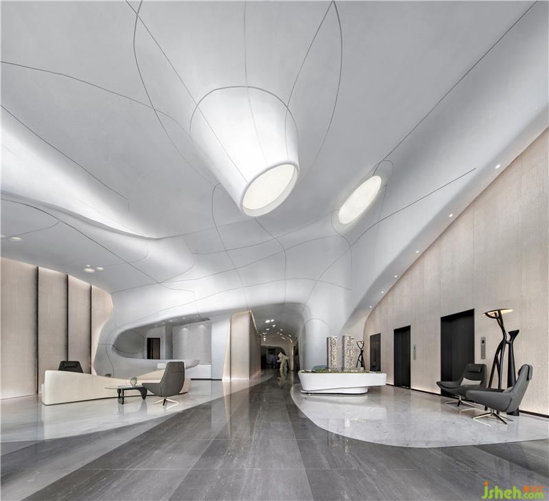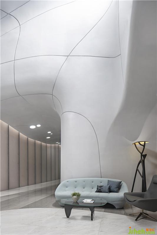 在材料的運用上,一如既往的盡可能克制著,彎曲的表面由輕盈型材料構(gòu)成,令空間生出無限種可能性,如同從縹緲間蜿蜒而來的水流、神秘的彌漫在半空之中,營造出極具未來感的場所精神與空間氣質(zhì)。無限延展而去的曲線予人視覺上的永續(xù)感,呈現(xiàn)出“少即是多”的平衡美感,減少不必要的材料消耗后,只余下本色充盈其間,領(lǐng)悟?qū)W⒌拿利?。在原始的純白中,我們卻預(yù)見一世斑斕的未來。
