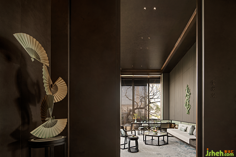 曲徑通幽,作別喧囂,VIP室內(nèi)墻面裝飾由金陵剪紙藝術(shù)演變而來,營銷中心設計采用當代手法及新型材料進行演繹,又貼合金陵剪紙粗中有細,拙中見靈的藝術(shù)形式,連綿不斷,藏古韻今。金陵意境與宋人雅致的生活情趣,在盤石設計的筆下被描繪得栩栩如生。