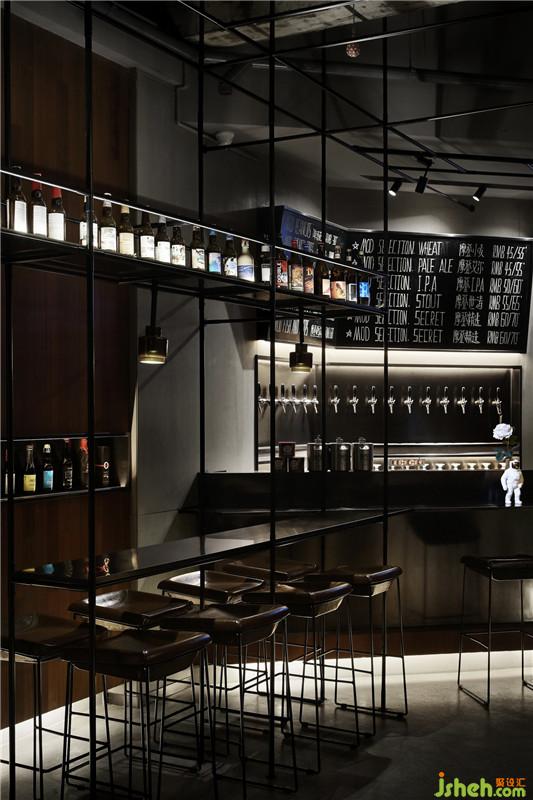 MOD精釀,面積70平米,空間結(jié)構(gòu)十分狹長,且層高又高,如果采用傳統(tǒng)的空間布局,則遠(yuǎn)遠(yuǎn)不能滿足業(yè)主的需求;故摒棄了占位面積大而又容納人數(shù)少的散座;利用層高的高度,特別設(shè)計了長吧位與卡座,不僅使容納人數(shù)提升了一倍,還營造了隨意舒適的氛圍,在這里客人可坐可站可交流,讓客人得到最大程度的放松;而且吧臺與卡座的高低錯落有致豐富了空間,也在視覺上得到了延伸,讓整個空間更加靈動。裝修公司