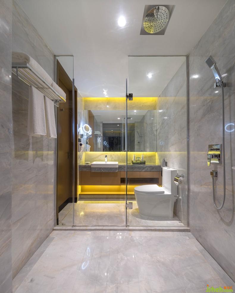 洗手間整體采用水云灰大理石裝飾,猶如清晨海邊的天空一般清爽,配以暖色的燈光,給客人一種美妙的入住體驗。設(shè)計公司