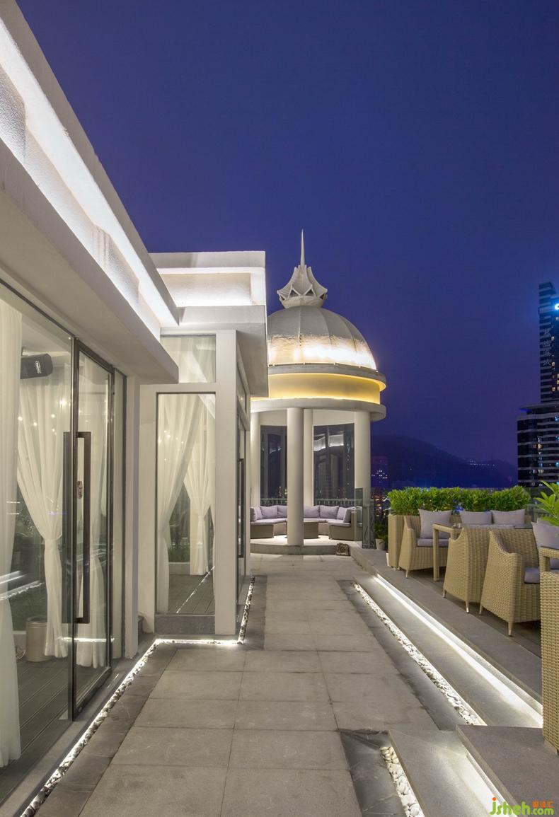 酒吧位置在酒店頂樓19層面朝大海,外觀以歐式城堡呈現(xiàn) ;這是酒吧戶外的一部分。設(shè)計(jì)公司